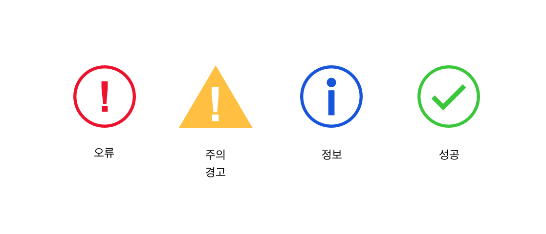 - 특수한 상황(경고,불가,처리 등등..) : 해당상황가 알맞은 의미를 가진 색상을 사용한다.