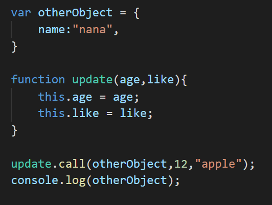 name : "nana" 밖에 없던 otherobject에 like와 age가 추가됬다.