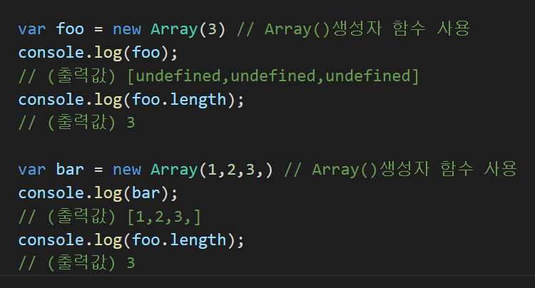 - 그외의 경우 : 호출된 인자를 요소로 갖는 배열 생성
