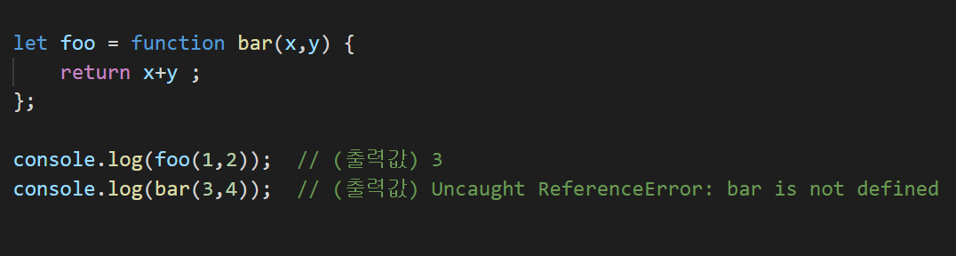 기명 함수에 쓰인 함수 이름은 외부로 호출되지 않는다.